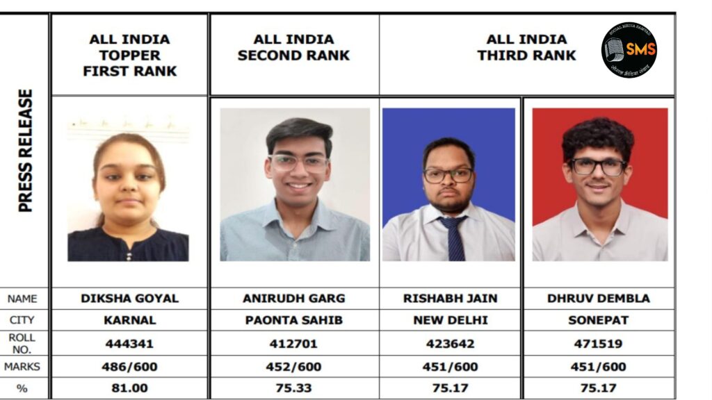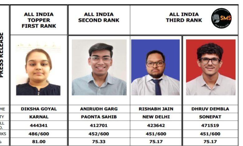 CA Results 2026:-ICAI ने जारी किए CA परीक्षा के नतीजे: 7,590 उम्मीदवार बने चार्टर्ड अकाउंटेंट, दीक्षा गोयल ऑल इंडिया टॉपर
