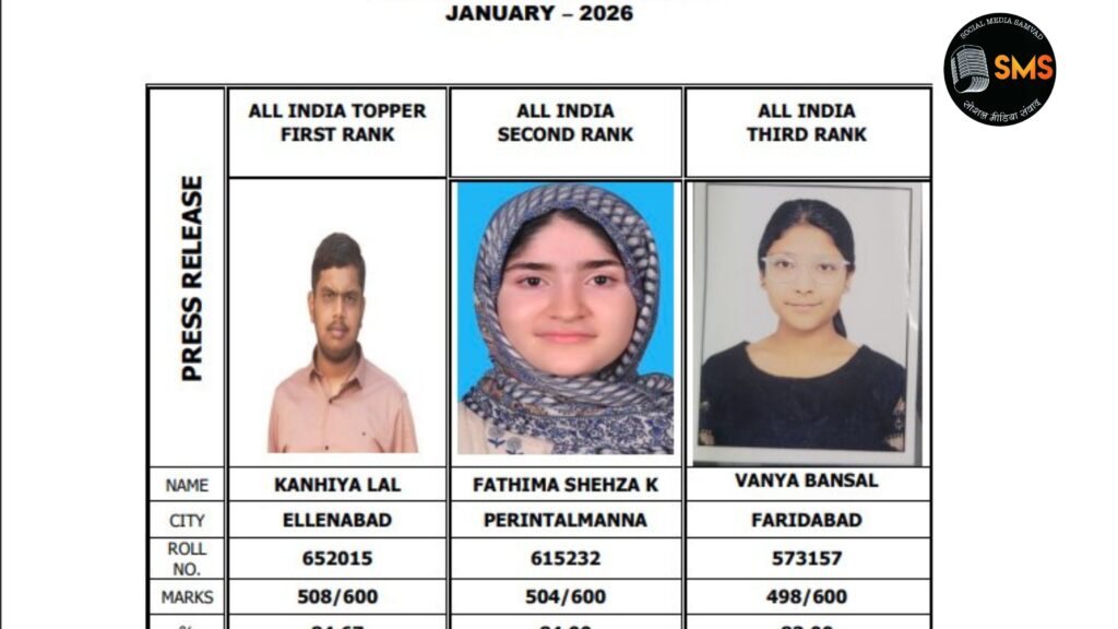 CA Results 2026:-CA फाइनल टॉपर्स (जनवरी 2026)