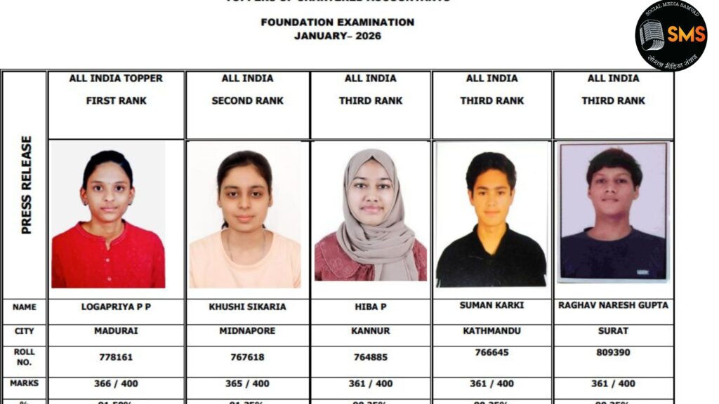 CA Results 2026:-CA फाउंडेशन टॉपर्स