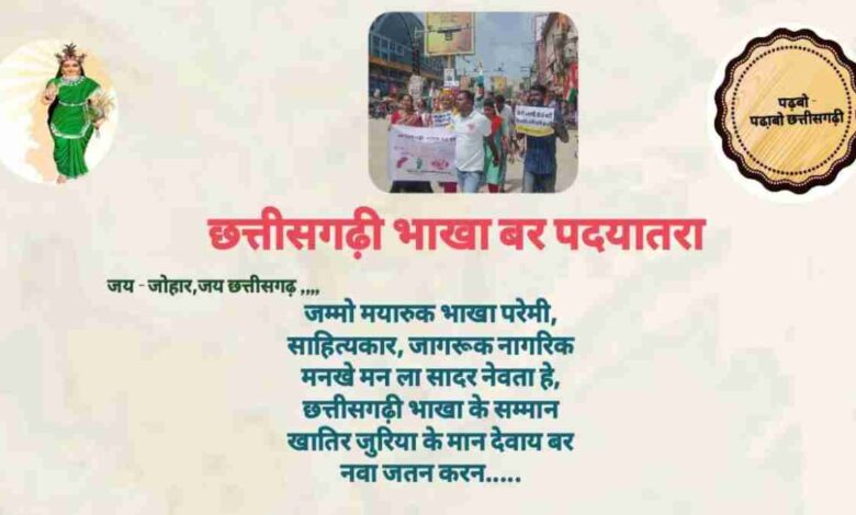 CG NEWS:-छत्तीसगढ़ी भाषा को 8वीं अनुसूची में शामिल करने की मांग को लेकर रायपुर में पदयात्रा