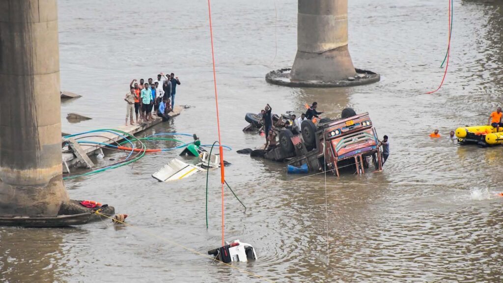 यह हादसा सुबह के शुरुआती घंटों में हुआ, जब यातायात सामान्य रूप से चल रहा था। पुल के टूटने से एक बड़ा हिस्सा नदी में समा गया और उस पर गुजर रहे वाहन नदी में गिर गए। राहत और बचाव कार्य में स्थानीय प्रशासन, फायर ब्रिगेड, वडोदरा नगर निगम और NDRF की टीमें जुटी हुई हैं।