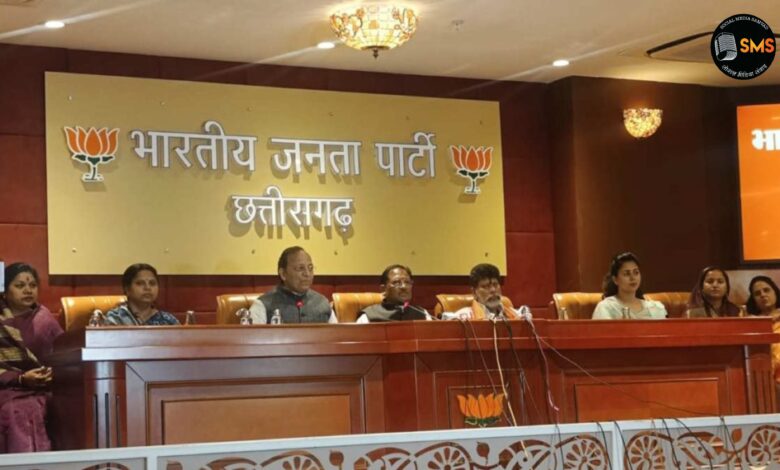 Nari Shakti Vandan:-इस प्रेस कॉन्फ्रेंस में मुख्यमंत्री विष्णु देव साय, भाजपा प्रदेश अध्यक्ष किरण सिंहदेव समेत कई नेता मौजूद रहे।